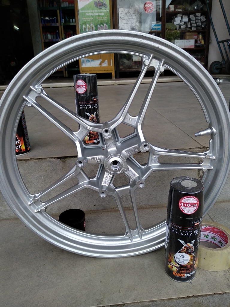 Bước 5 : Sơn 2-3 lớp mỏng màu bạc kim loại Y3, mỗi lớp cách nhau 3-5 phút (hoặc lâu hơn tùy vào điều kiện thời tiết)