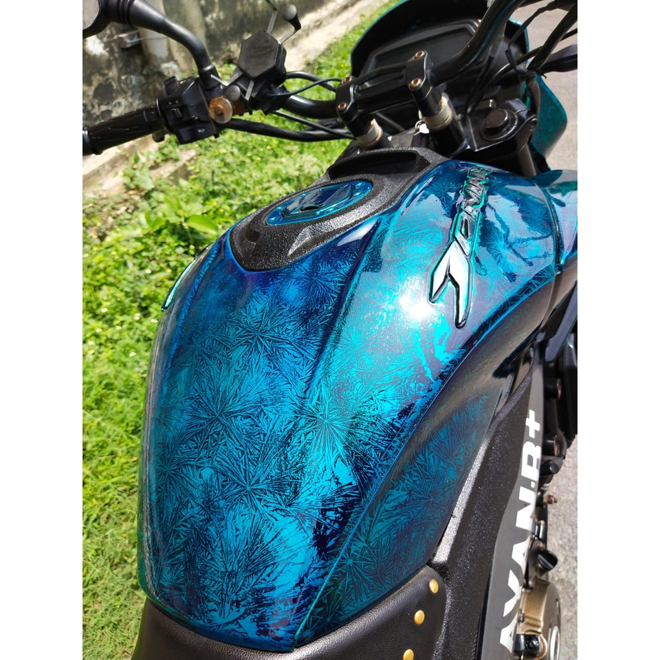 Bước 5: Phun 2 – 3 lớp hiệu ứng tinh thể KE03, sau đó phơi trực tiếp dưới ánh nắng mặt trời đến khi nào thấy xuất hiện các sợi tinh thể