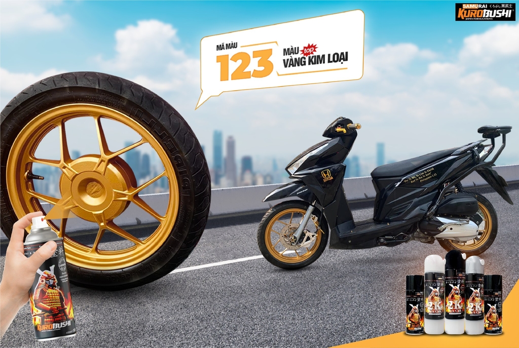 Sơn xịt Samurai Kurobushi - MÀU VÀNG ĐỒNG 123 (400ml)