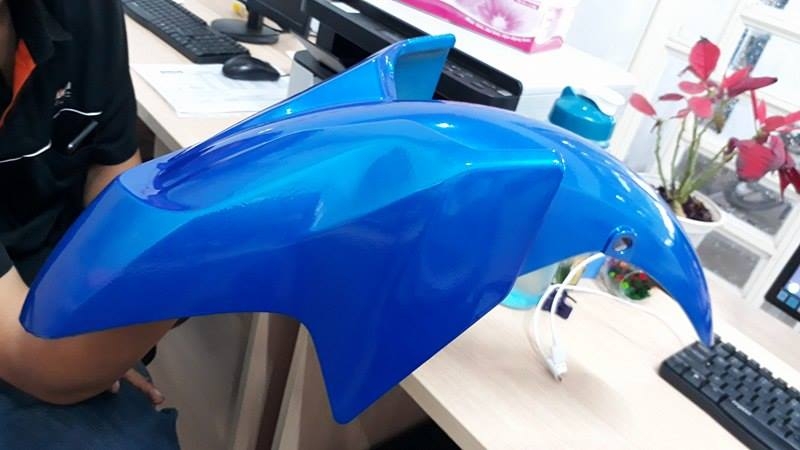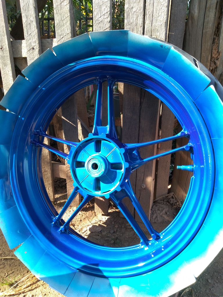 Bước 6 : Sơn 2-3 lớp mỏng màu xanh dương candy Y139*, mỗi lớp cách nhau 3-5 phút (hoặc lâu hơn tùy vào điều kiện thời tiết)