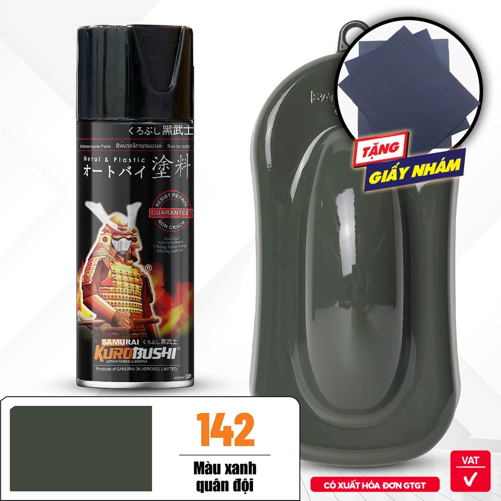 Sơn xịt Samurai Kurobushi - MÀU XANH QUÂN ĐỘI 142 (400ml)